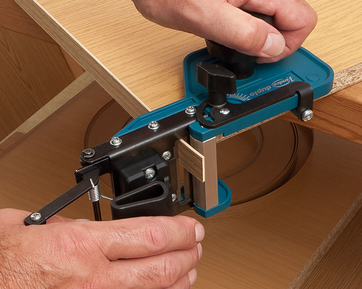 Corta a parte excedente em ambas as pontas da placa. Corte limpo preciso e rápido. Para o corte de orlas em PVC, melamina, poliester, ABC e folha de madeira até 3 mm espessura e 45 mm de largura. O sistema de guilhotina permite o corte sem esforço. Equipado com lâminas afiáveis e regulação da posição de corte. Permite corte angular até 60º.